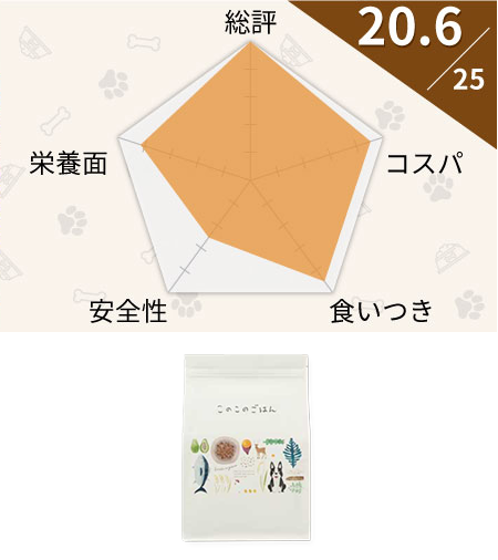 トウモロコシや小麦などの穀物は一切使わず、アレルギーの子にも安心です。ただある程度は穀物も不使用のため、アレルギーもちではない子には不向き。